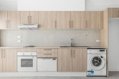 - Kitchen with dishwasher drawer and washing machine